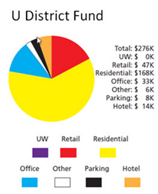 pie chart on the left show that the residential units would pay 61% of the budget while retails, hotels and parking pay only 25% of the total budget. The Fund will be used to do those promotional activities concentrated on the Ave and the core around the sound Transit station. These activities confer